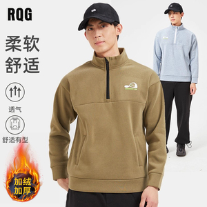 休闲运动风立领半拉链卫衣男士宽松加绒加厚秋冬新款中领打底绒衫