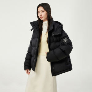 骆驼男装秋冬黑色加厚保暖鸭绒短款面包服男女同款防水羽绒服外套