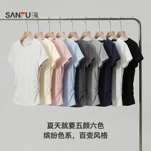 三福修身纯色短袖女2026新款夏季简约休闲圆领t恤插肩袖上衣女装