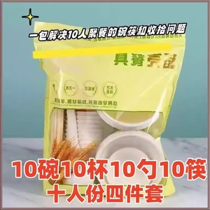 户外一次性餐具四件套装露营套装野餐圆形纸碗家用餐饮yj