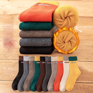 袜子女加厚加绒保暖毛圈秋冬款女士袜子高长筒纯色羊毛高筒抗寒