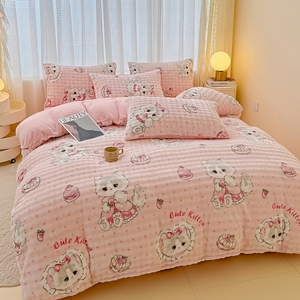 FUANINAIART家纺A类母婴级兔兔绒四件套牛奶绒无静电加厚床单床笠