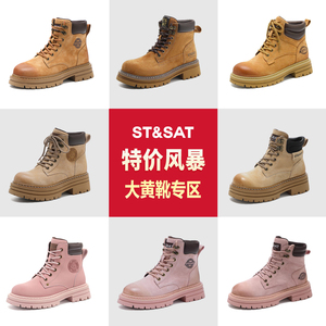 星期六英伦风真皮厚底马丁靴女2026春季新款系带复古大黄靴