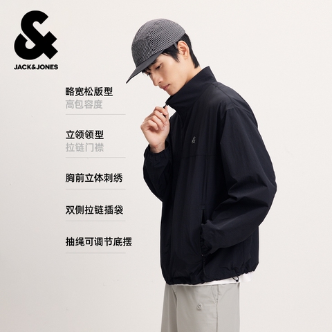【凉感防泼水】杰克琼斯男装春夏新款宽松刺绣立领外套防晒服上衣