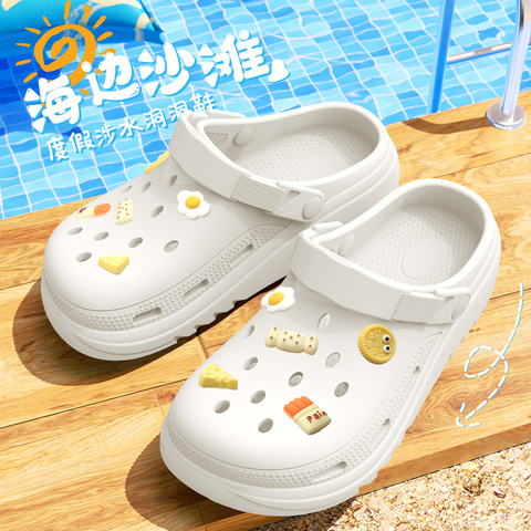 57( MF278 h13f5XLGl7e) https://m.tb.cn/h.iQisxwm 七色纺防滑洞洞鞋女款夏季家居厚底透气防臭外穿包头沙滩凉拖鞋男