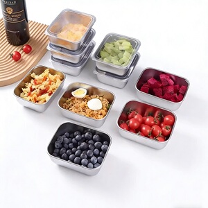 【冰箱收纳】不锈钢保鲜盒带盖方盘冰箱收纳盒盘子野餐盒饺子方盒