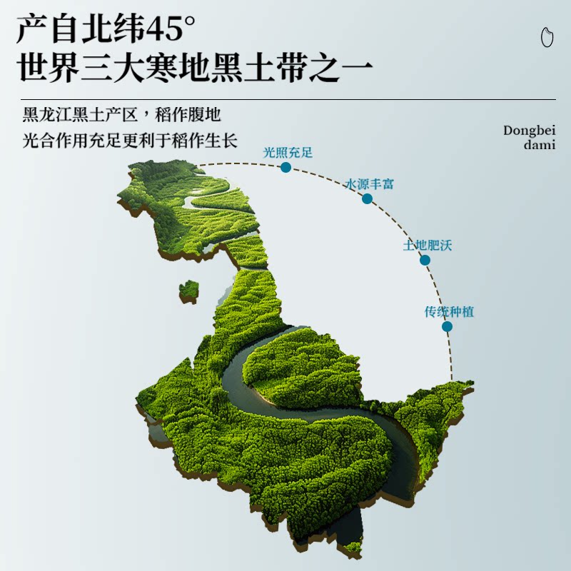 东北大米!黑龙江黑土地!东北地区原产!米粒形状饱满!口感软糯香甜!