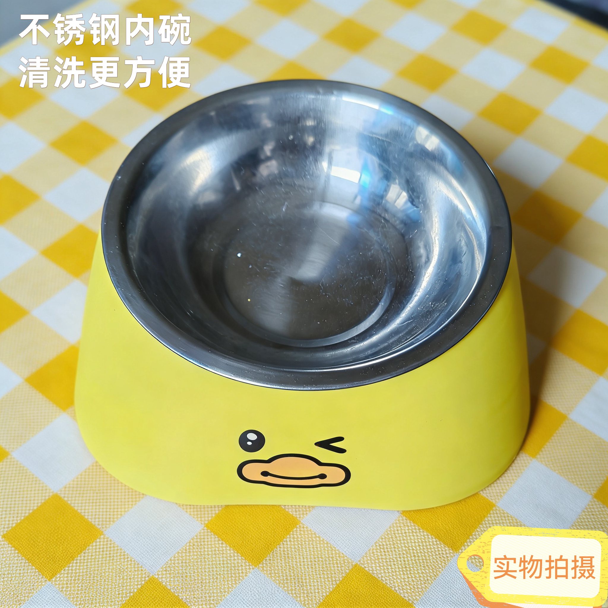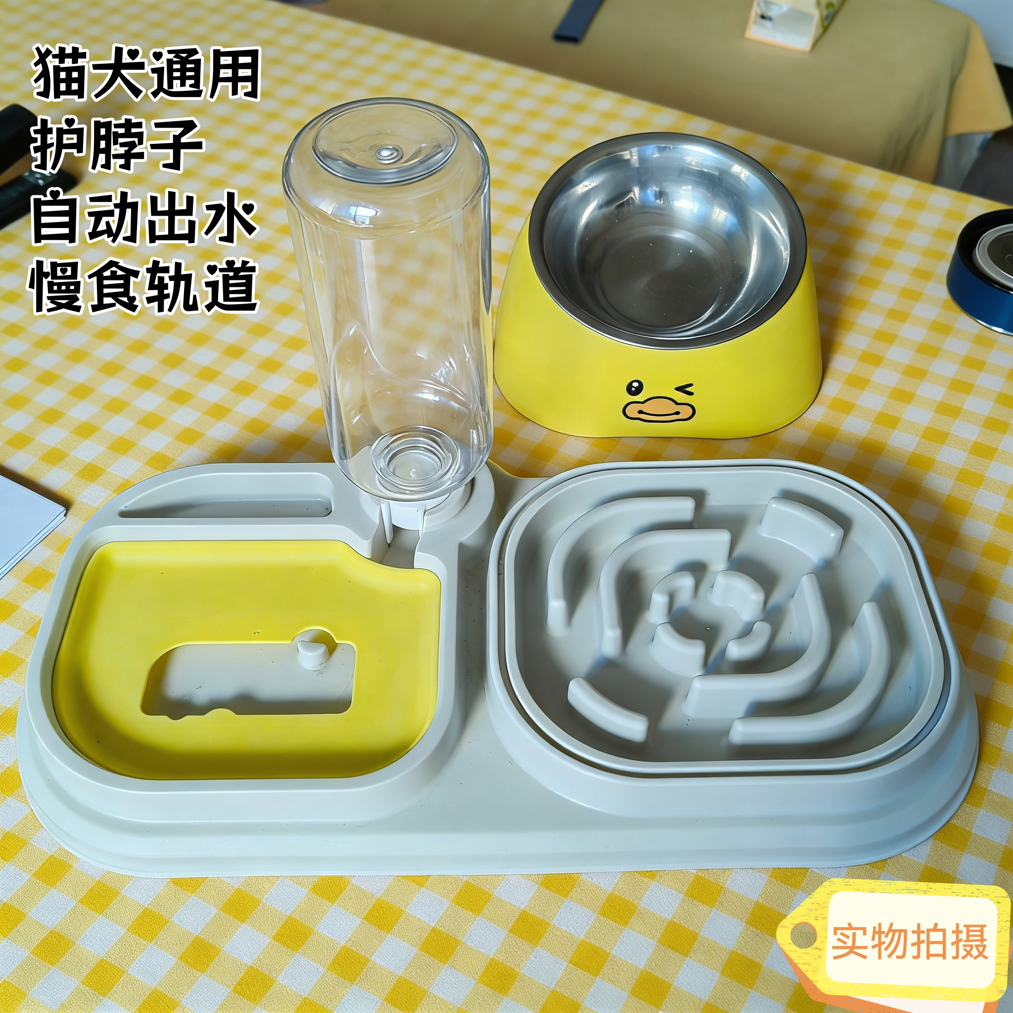 宠物碗猫狗食盆防打翻大容量斜口护颈水粮一体慢食不锈钢自动出水