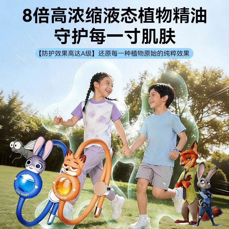 疯狂动物城联名驱蚊手环,儿童成人婴儿通用,强力防蚊虫叮咬,户外出行必备神器,安全无刺激,随身佩戴更安心!