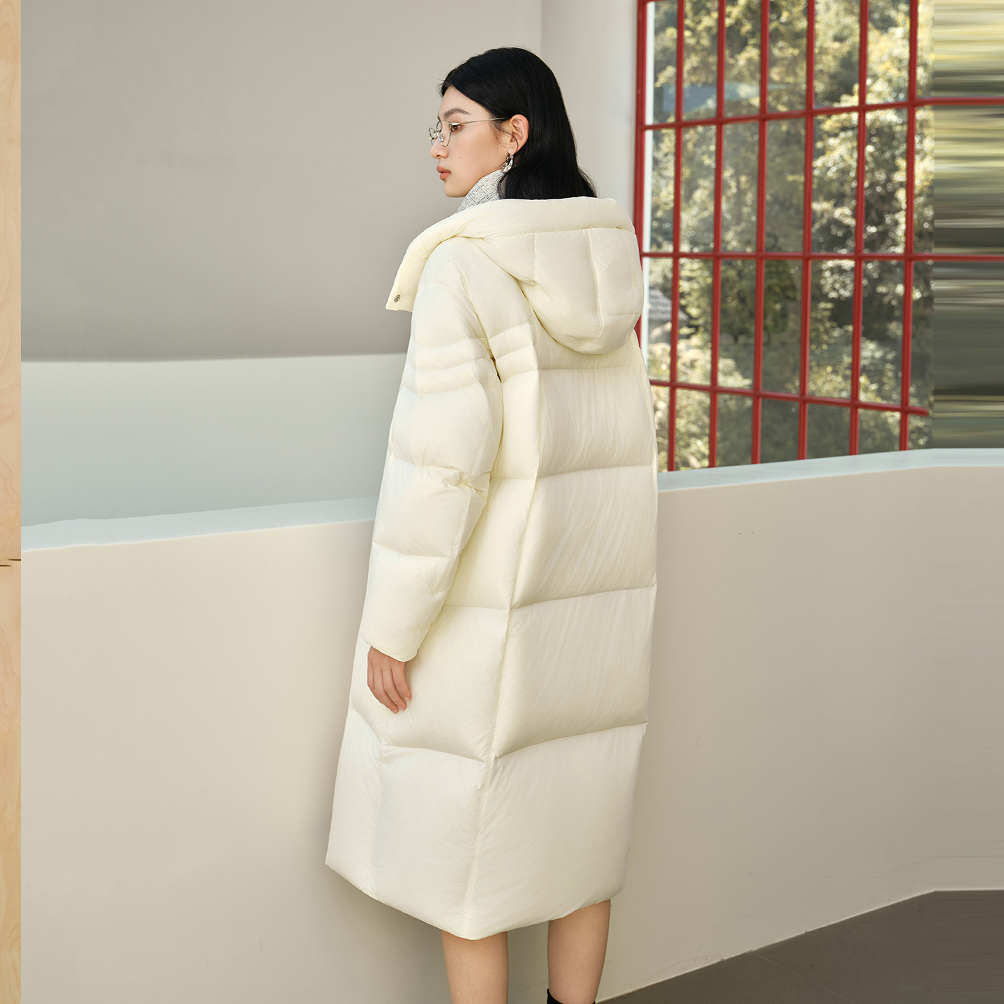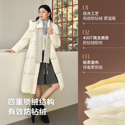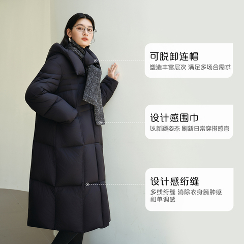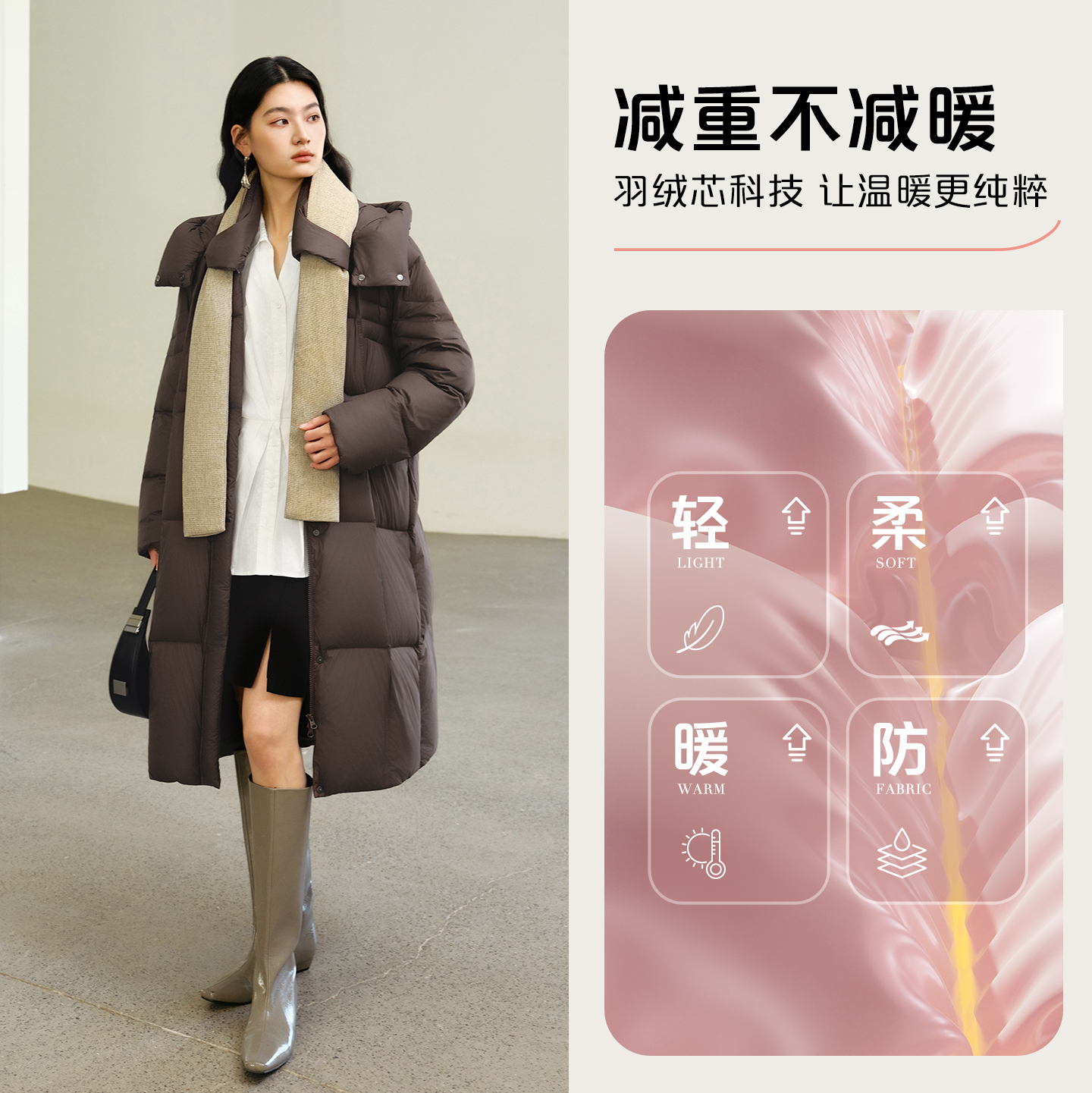 【陈都灵同款】艾莱依长款羽绒服女2025新款连帽防风保暖围巾外套