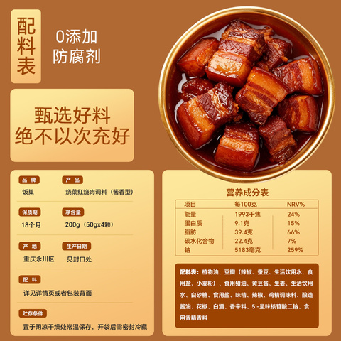 饭巢家常菜红烧肉酱料调味料200g