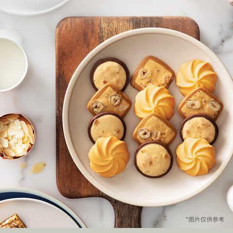精选优质原料,带来浓郁奶香与酥脆口感的完美结合。美心生活黄油曲奇搭配扁桃仁酥,风味丰富,适合下午茶或亲友分享。独立小包装设计,方便携带,随时随地享受惬意时光。经典港式点心工艺,品质稳定,深受消费者喜爱。无论是居家休闲、办公加餐还是节日赠礼,都是体面又贴心的选择。快来体验这份源自匠心的美味小食组合吧。