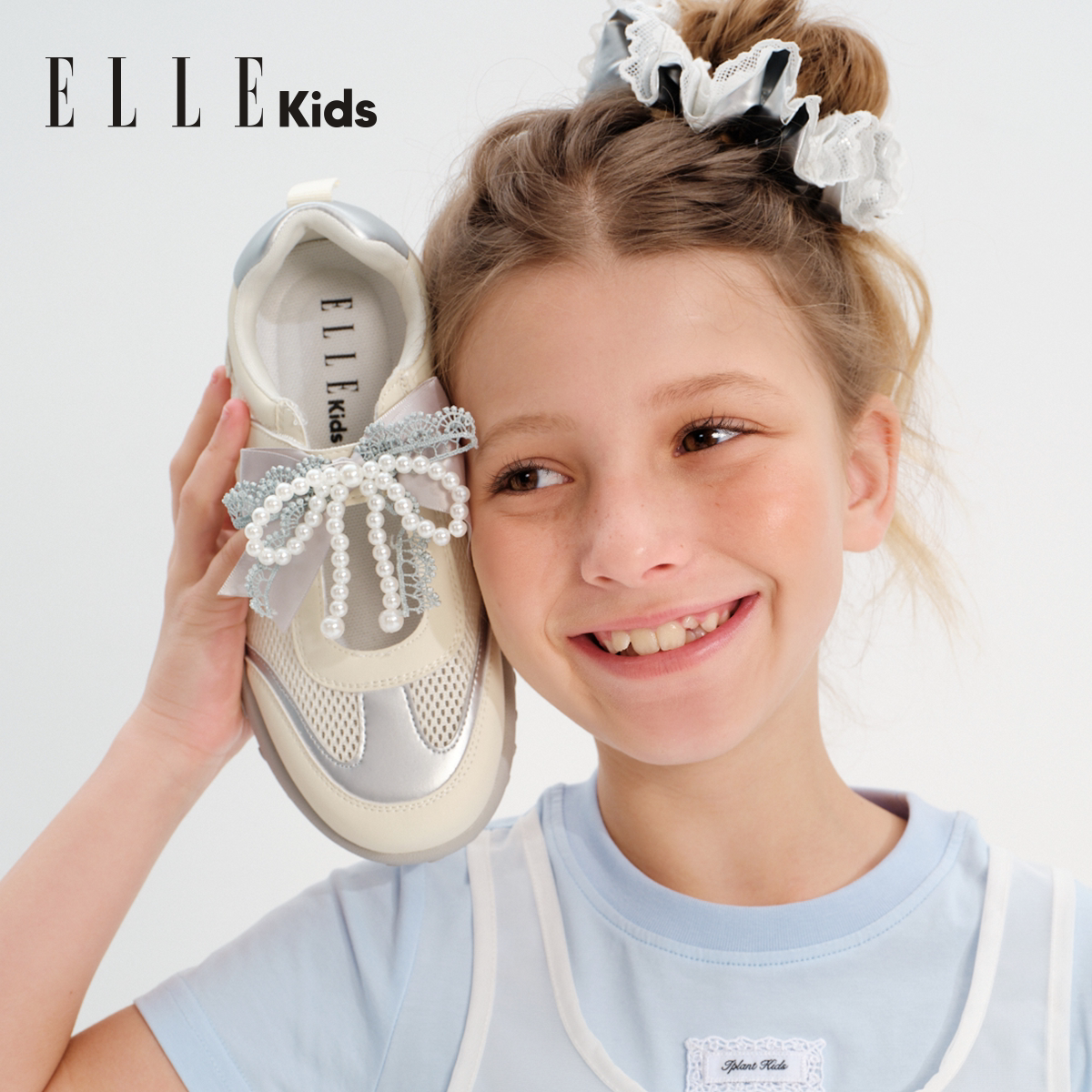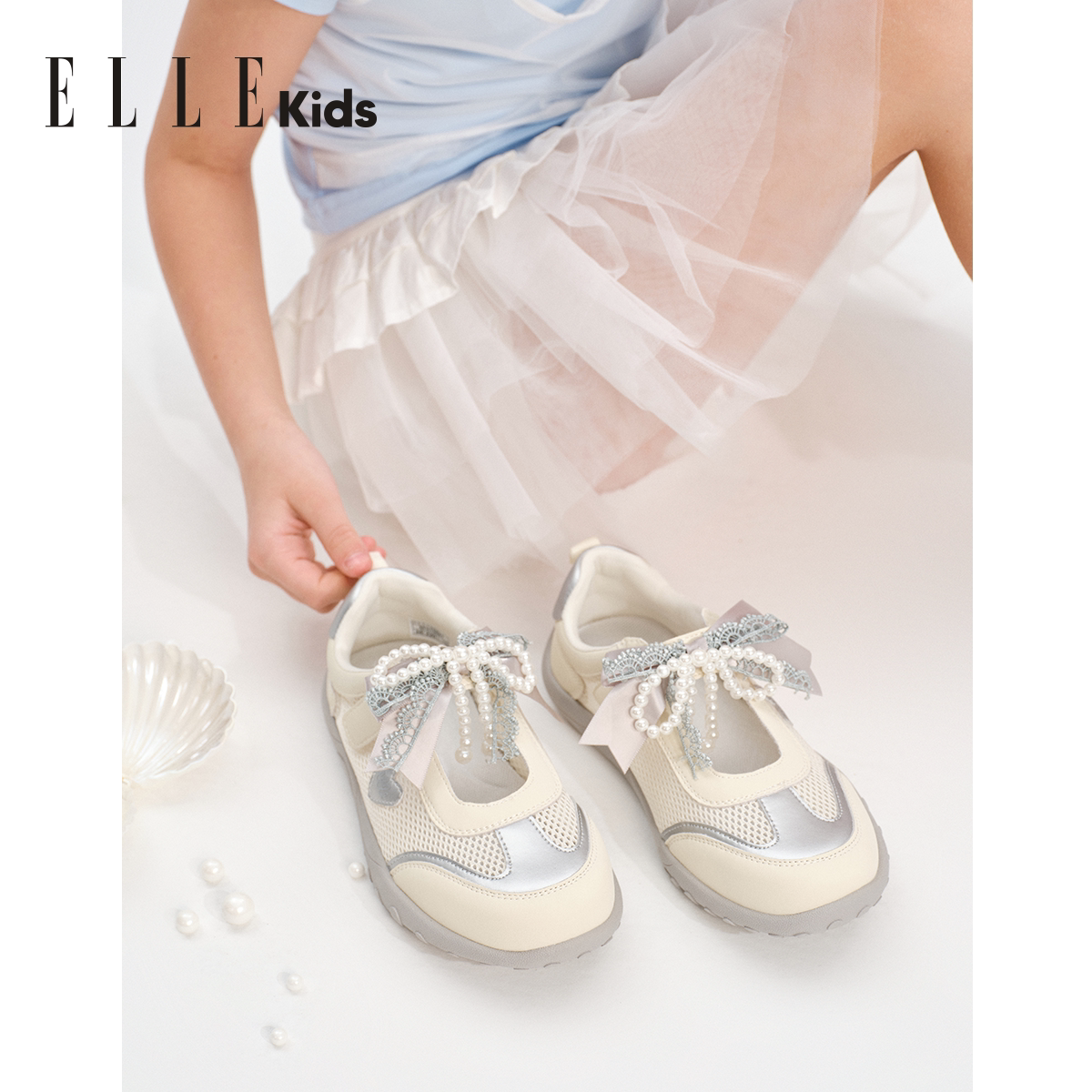 ELLEkids童鞋 女童透气网面运动鞋夏季新款小女孩软底珍珠休闲鞋