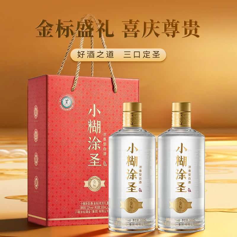 小糊涂仙小糊涂圣(金标)三钻双支礼盒52度浓香型白酒
