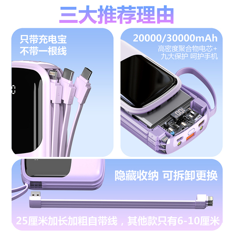 【下单赠0.5米USB-C数据线】3C认证,超级快充,可上飞机,支持各种手机充电协议,自带三线隐藏收纳,高密度电芯容量足不虚标,9大安全保护更安全,30天无理由退换货【赠运费险】