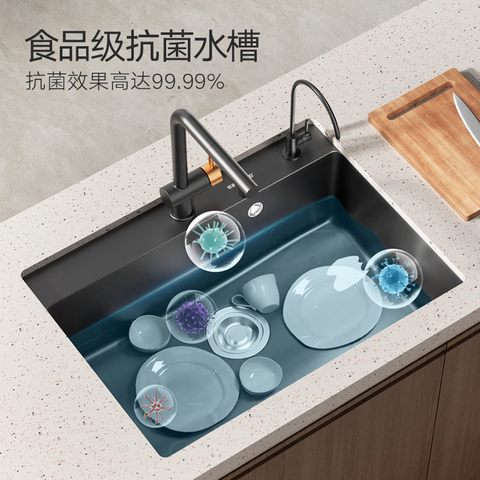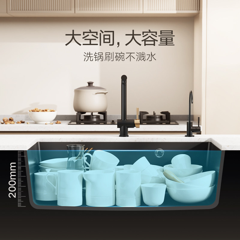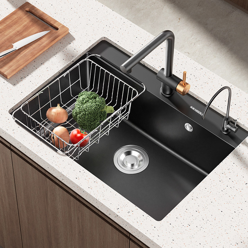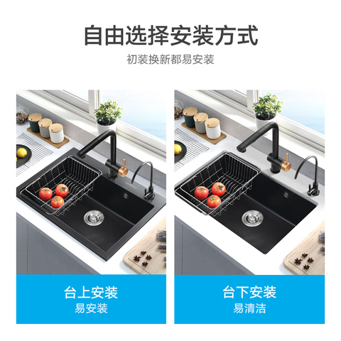 09( HU071 mgDr59MgpDs) https://m.tb.cn/h.iGzwnWD 悍高厨房石英石水槽白黑色大单槽洗菜池洗碗盆台上下盆沥水篮套餐