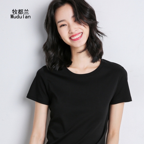 98( HU287 Bs0XUEXb5Gd) https://m.tb.cn/h.ier1Cy2 1牧都兰正肩纯棉T恤女韩版打底百搭修身自带显瘦腰线纯色上衣
