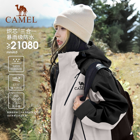 骆驼雨神冲锋衣2.0版三合一冬季加厚新款外套男户外防水登山服女