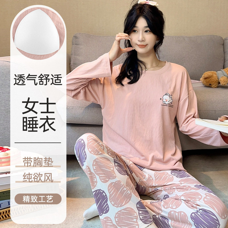 39( HU108 T4zfUx4j1Yh) https://m.tb.cn/h.iVq3oBE 新中式国风竹叶睡衣女春秋款带胸垫长袖长裤甜美少女家居服套装xw