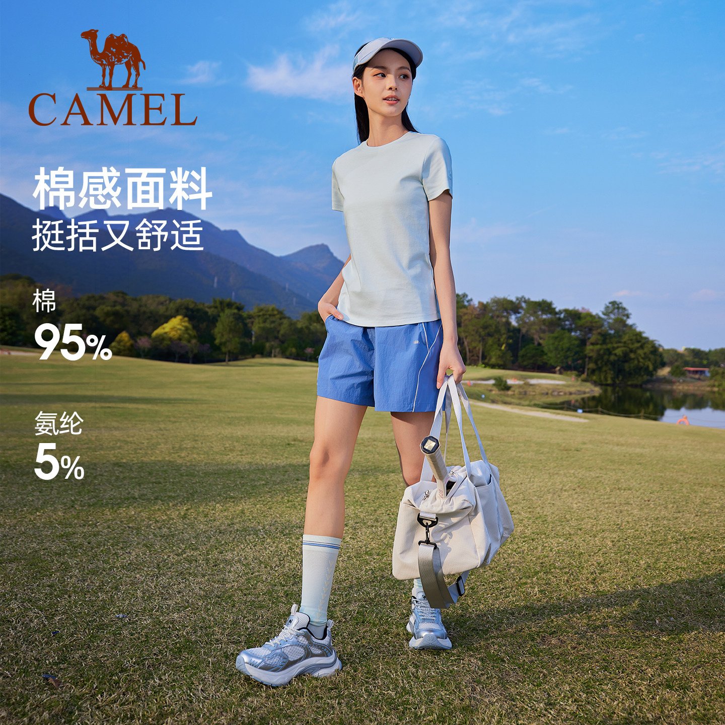 骆驼纯棉T恤男春夏季短袖圆领情侣新款复古宽松运动休闲上衣女