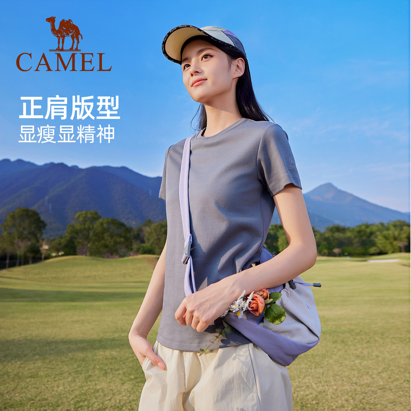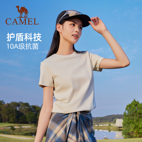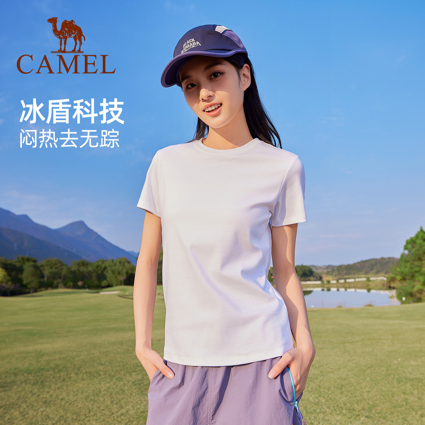 骆驼运动T恤女士新款抗菌短袖纯色冰感透气圆领休闲跑步打底上衣