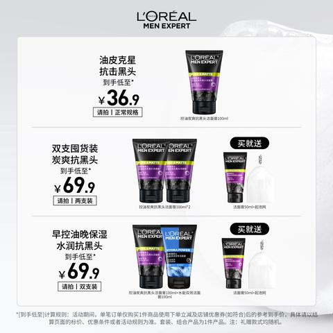 27¥ CZ225 I7T3ftAu0zJ¥ https://m.tb.cn/h.7cfNp4x 【百亿补贴】欧莱雅男士专用去黑头洗面奶清洁毛孔控油清爽洁面乳
