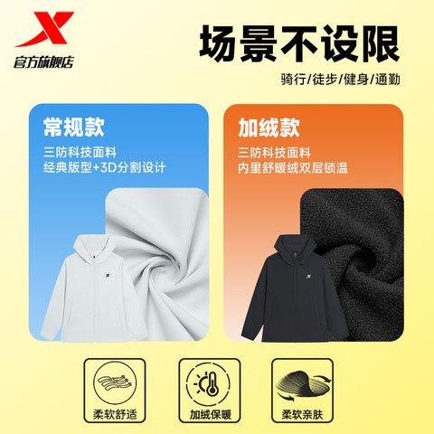 17¥ CA381 4KHQftAIAoI¥ https://m.tb.cn/h.7cKCMTM 特步外套男士秋冬新款冲锋男装休闲上衣男款运动加绒防风夹克风衣