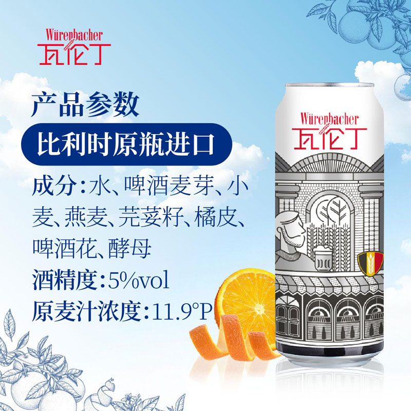 瓦伦丁比利时原装进口精酿小麦白啤500ml*12罐整箱装聚会烧烤,到手75.9,抄底