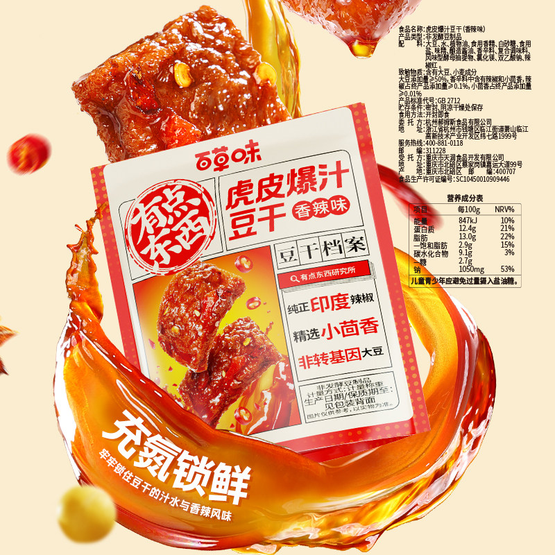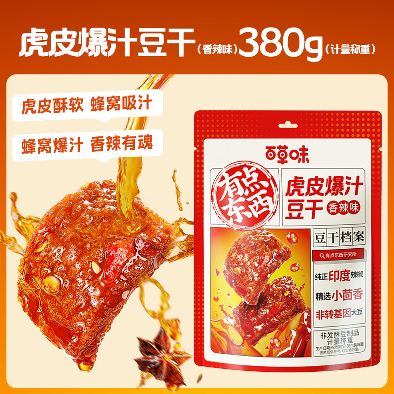 【香辣过瘾!百草味虎皮爆汁豆干380g散装称重,下午茶休闲必备!】一口爆汁,香辣入魂,办公室零食,解馋又过瘾! 叠淘金币到手9.76元