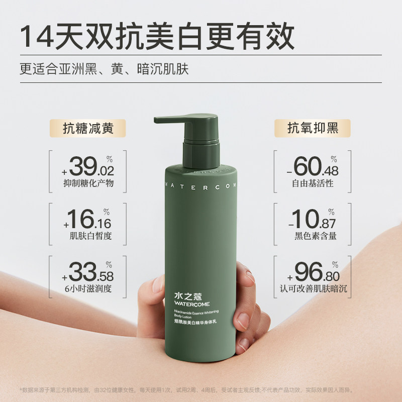 水之蔻身体乳,秋冬必备!含烟酰胺果酸,保湿滋润,清爽不油腻,全身使用更安心。润肤效果明显,肌肤柔滑细腻,呵护每一寸肌肤!