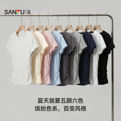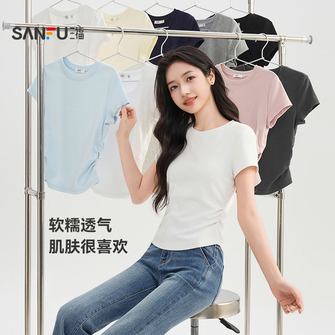 78( CZ057 NgPVUxQiA2M) https://m.tb.cn/h.if0SvsT 三福短袖女2026新款夏季小个子简约休闲V领修身短款t恤上衣女装