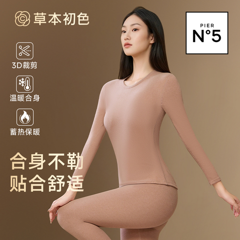 草本初色2025新款女士,加绒秋衣秋裤内衣发热高弹亲肤舒适保暖套装