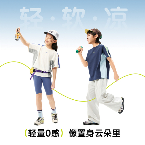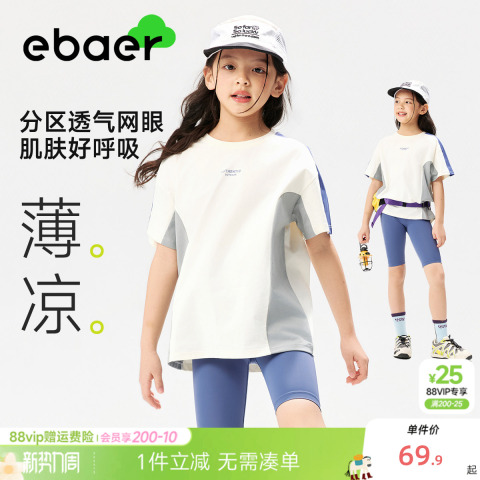 58( HU293 URr85YpsDUD) https://m.tb.cn/h.iiHnP9G EBAER儿童短袖T恤2026夏季新款男女童防晒网眼速干透气拼接运动衣
