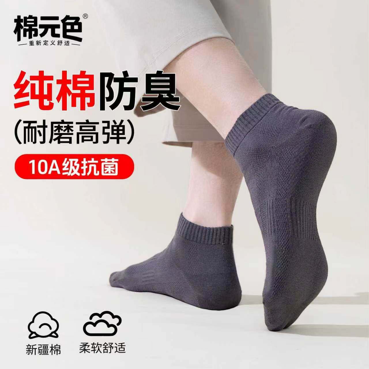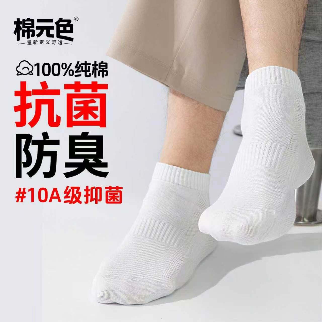 棉元色纯棉短袜春夏薄款10A抗菌透气吸汗排湿短筒袜消臭不臭脚
