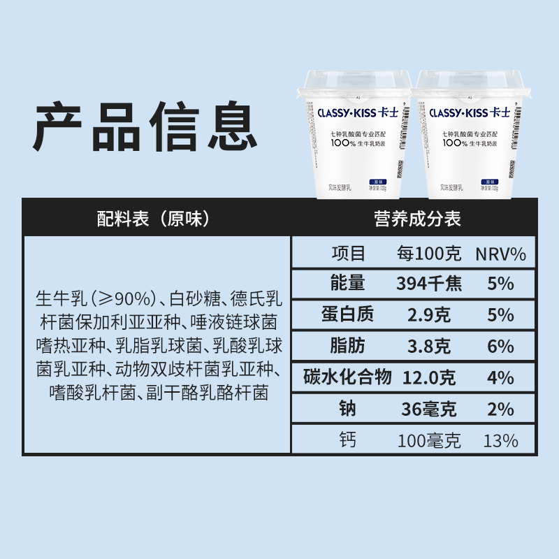 卡士酸奶原味100g*18杯风味发酵乳乳酸菌