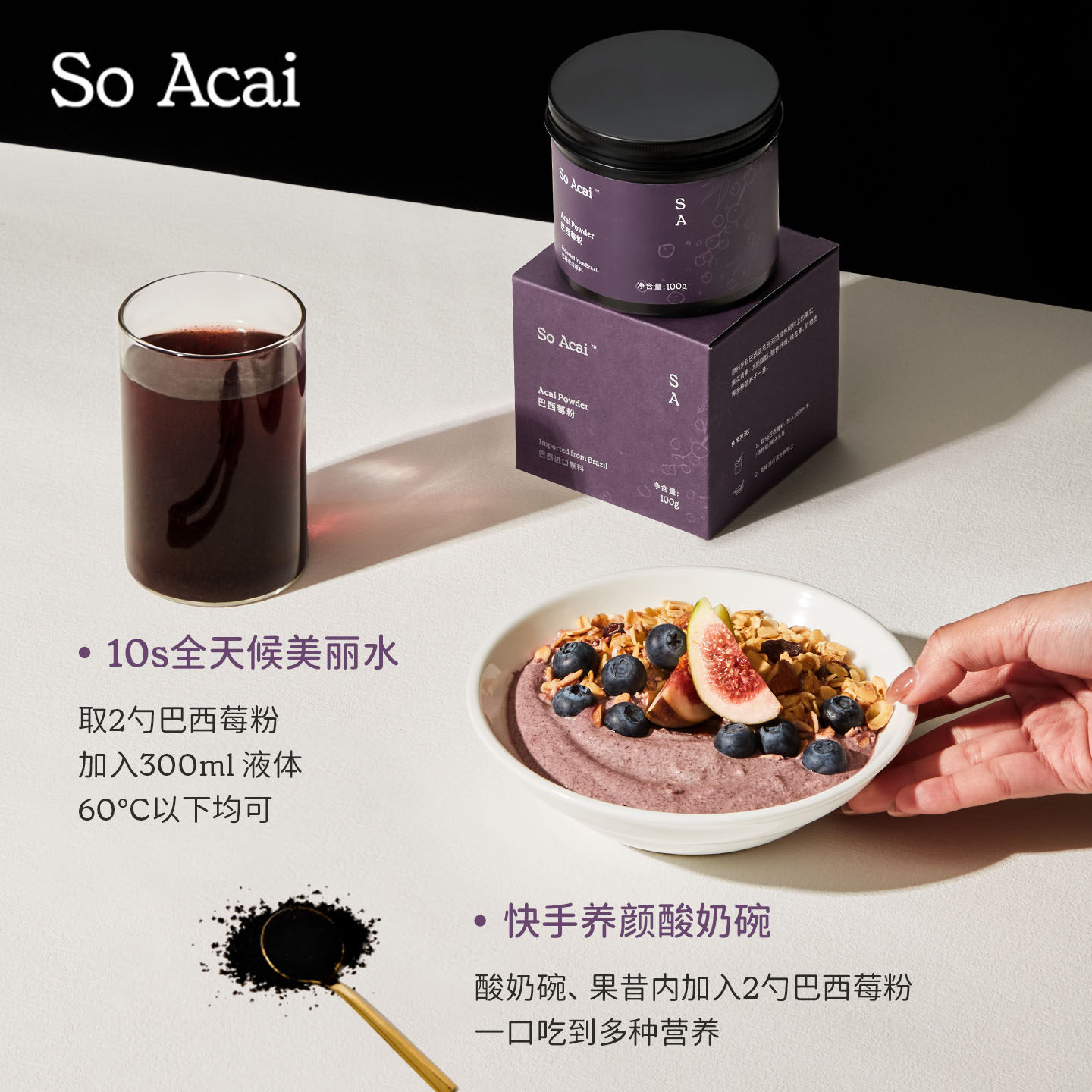 soacai巴西莓粉官方旗舰店花青素莓果粉超级食物梅粉籽酸奶碗配料