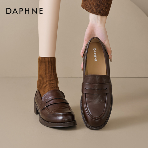 57( MF287 b61H5cIkr0v) https://m.tb.cn/h.iQnmkKD 达芙妮英伦风黑色小皮鞋女春季2026新款粗中跟乐福鞋通勤工作单鞋