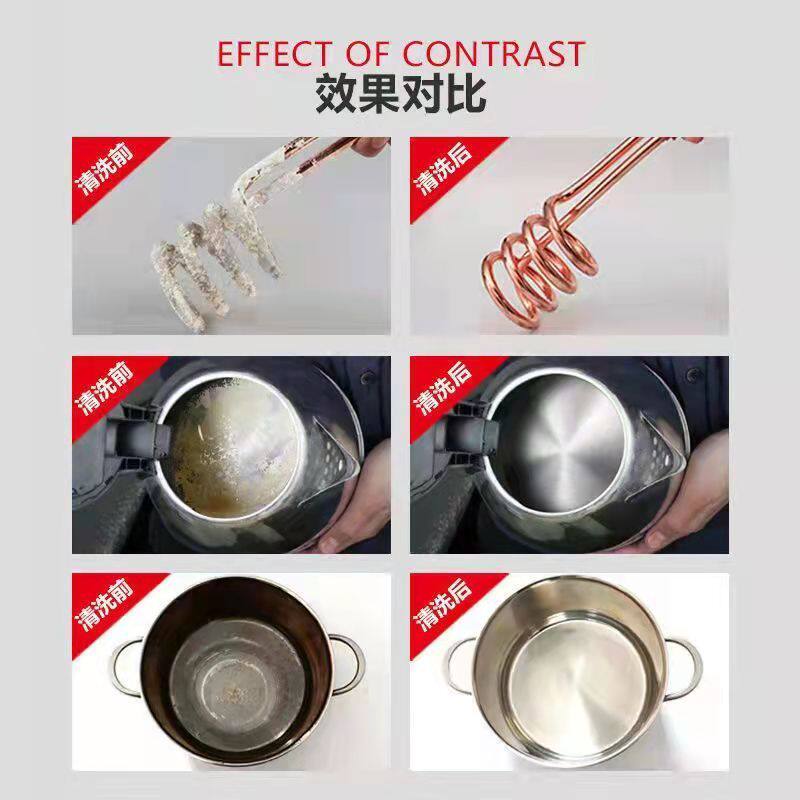 采用了高效柠檬酸配方,除垢效果显著,清洁电水壶、茶壶和餐具都轻松搞定。使用方便,袋装设计,无毒无害。