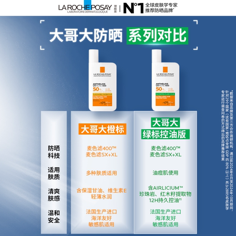 【敖子逸同款】理肤泉大哥大防晒2支海边户外防水清爽隔离海外店A