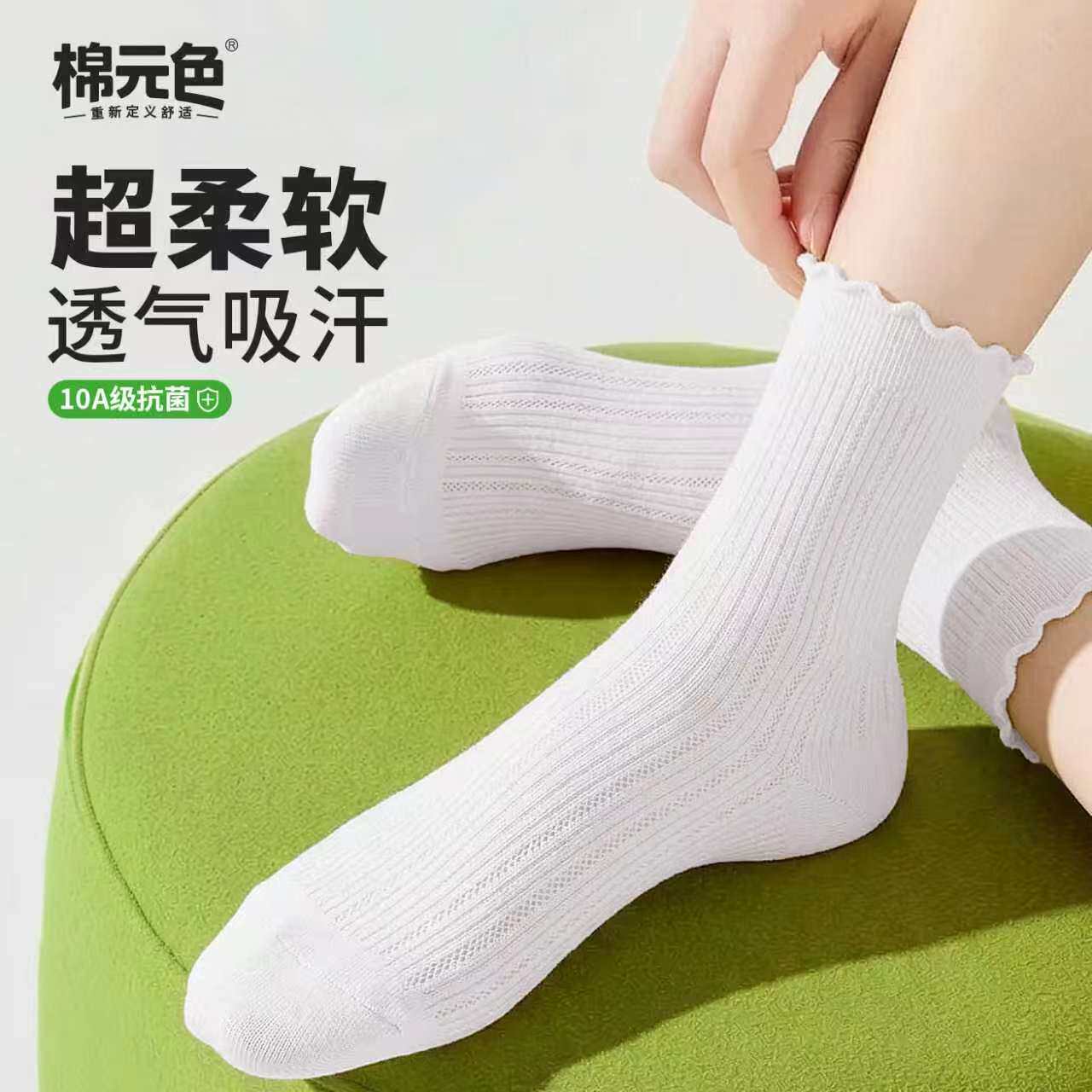 棉元色纯棉短袜春夏薄款10A抗菌透气吸汗排湿短筒袜消臭不臭脚