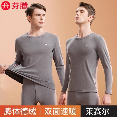 芬腾膨体绒德保暖内衣加绒加厚套装打底女士男士棉毛衫秋衣秋裤冬