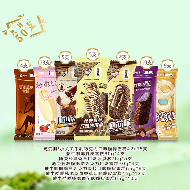 蒙牛大牌雪糕,到手50支!没有布丁凑数,都是好吃的~多口味组合!蒙牛随变香草、巧克力、草莓小尖尖,冰爽解暑超满足,性价比超高,囤货选