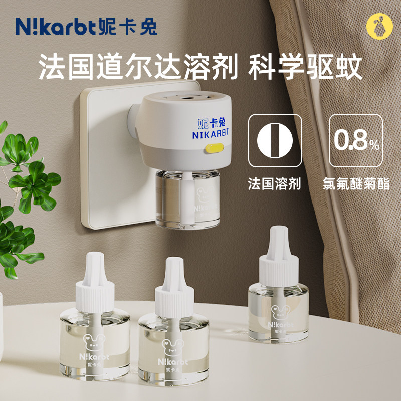 妮卡兔电热蚊香液补充液温和无烟室内驱蚊插电式定时加热器蚊香液