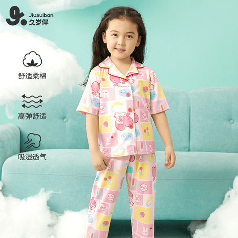 久岁伴儿童睡衣女童夏季薄款家居服套装少女学生短袖短裤高弹透气