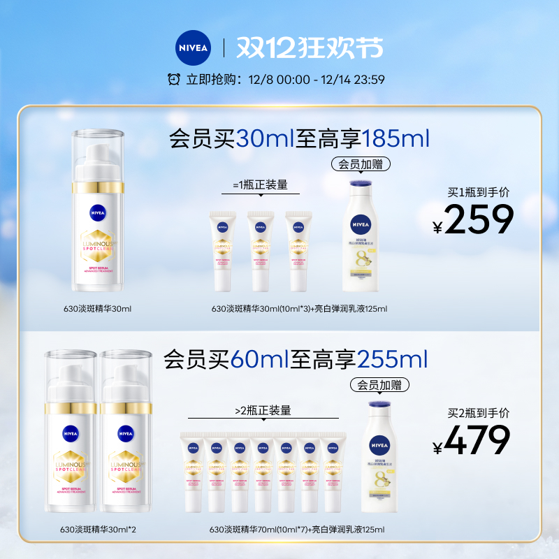 【赠:630精华10ml*3+会员加赠:亮白弹润乳液125ml】妮维雅630精华液,5维焕白,改善肌肤暗沉,对抗自由基预防潜在斑,乳液质地,轻薄易吸收~~