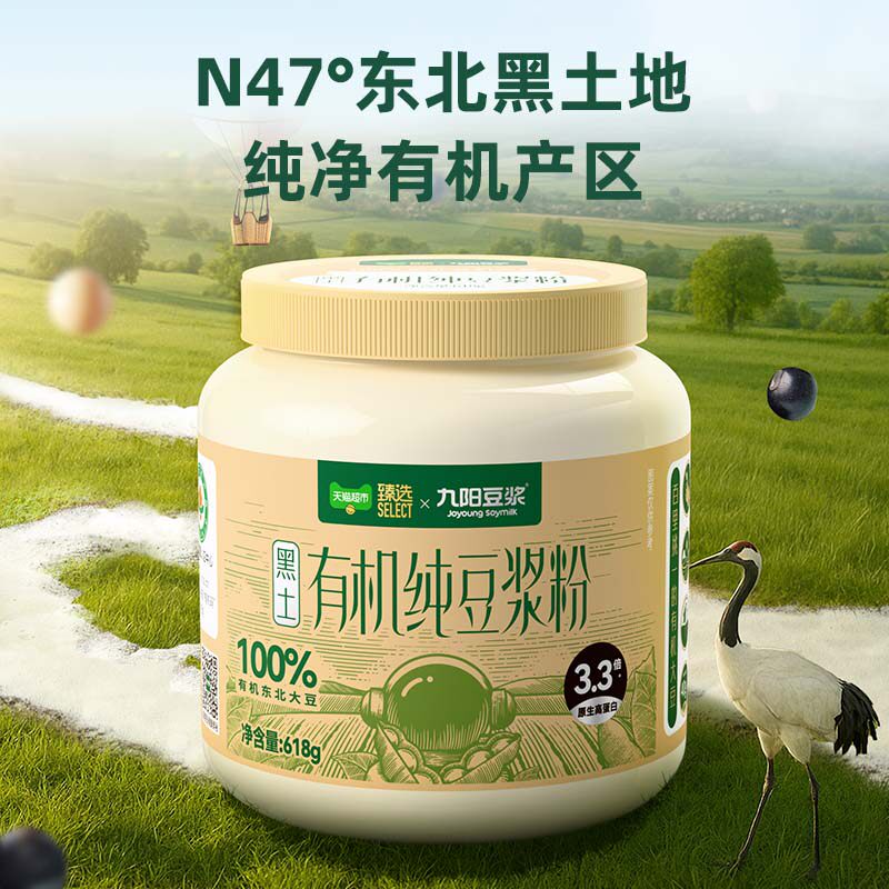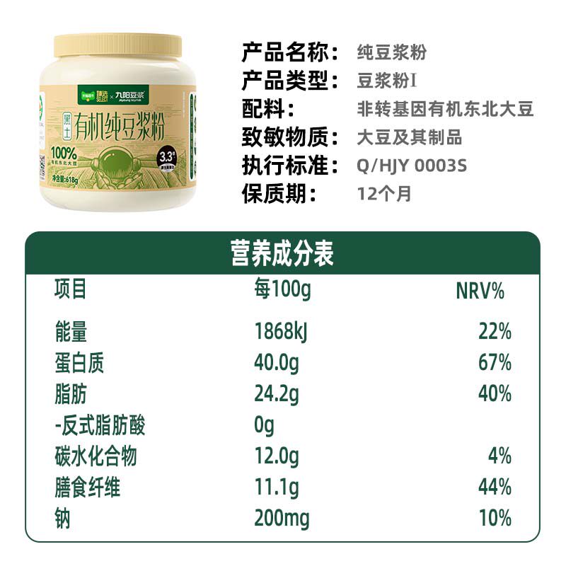 49( CZ001 L5ER504tUb1) https://m.tb.cn/h.iSx131V 臻选九阳豆浆有机纯豆浆粉罐装早餐营养618g*1罐