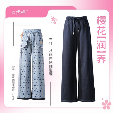 优棉!樱花精油香氛阔腿牛仔裤,免洗润养级丹宁,内置樱花精油香氛,后腰双袋5.0火焰芯片(内嵌银色导电矩阵),薄绒保暖超舒适!开春穿正合适~镰刀版型、有弧度的阔腿设计!对各种身材都很友好,日常穿轻松又耐看!【赠退货宝】