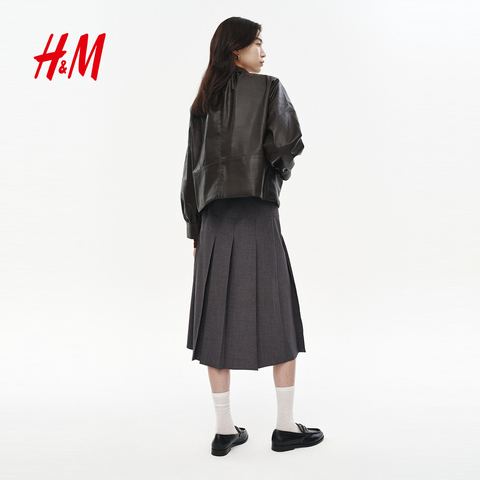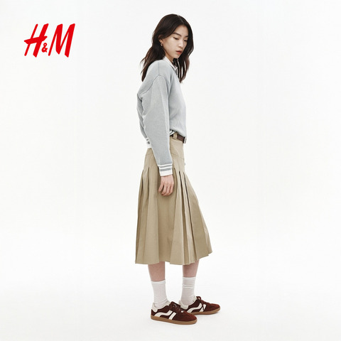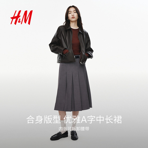 77( MF937 aEhNUzcoc1j) https://m.tb.cn/h.i5nV69O HM女装半身裙春季学院风中长款气质欧若风含腰带A字百褶裙1286177