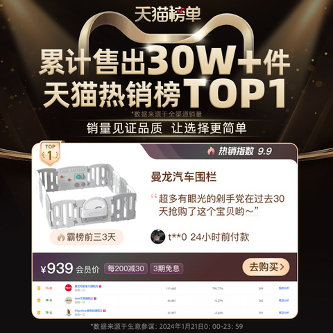 mloong曼龙汽车游戏围栏爬爬垫 【售价】:¥709.00 【券后】:¥509.00 【优惠券】:¥200 推荐理由:【曼龙官方旗舰店】】宝宝益智成长空间,38mm加厚面板,环保HDPE材质!五重稳固升级,宝宝推不倒,顺丰送货上门,妈妈更放心!【赠大件运费险】 👉复制这条信息19¥ CZ057 IeiLfGcUQAA¥ 打开【手机淘宝APP】即可领券购买:/