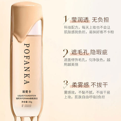 珀梵卡粉底液,持久遮瑕不脱妆,保湿提亮肤色,轻薄服帖不卡粉,打造自然裸妆感,素颜也能自信出门!